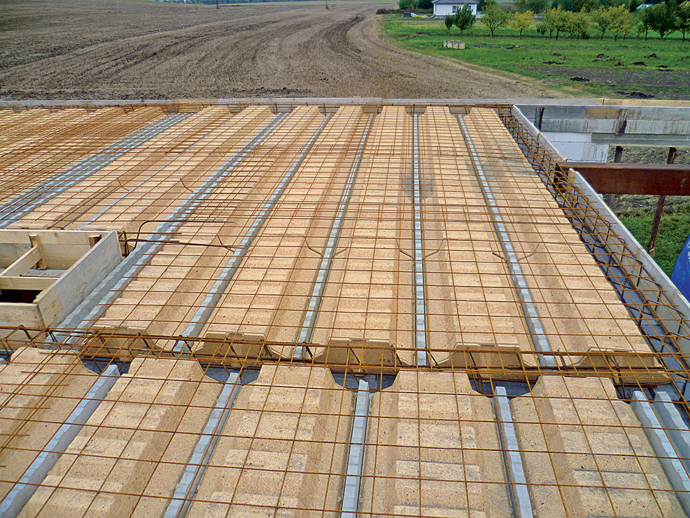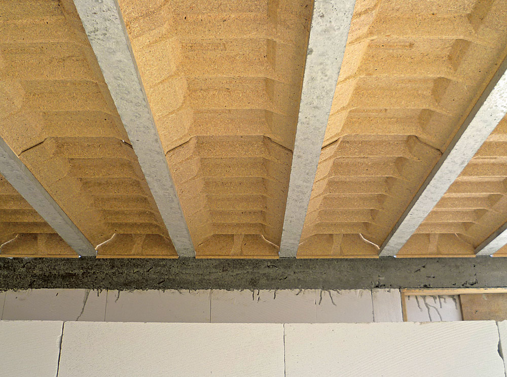 Stropný systém s vložkami na báze ľahkej lisovanej drevnej štiepky sa uplatnil aj na realizáciu stropov rodinných domov (obr. 6 až 9).