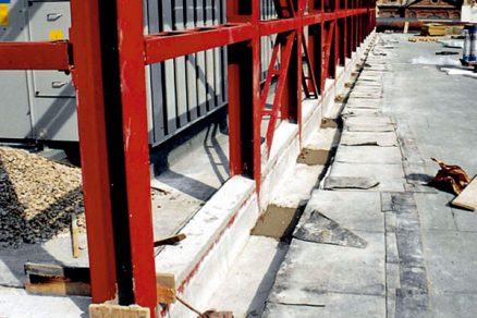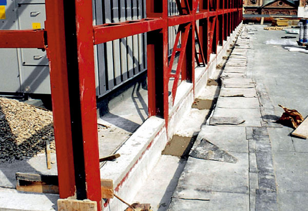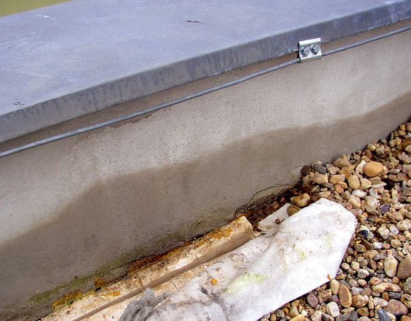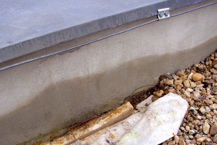 | Obr. 9 Plochy na natavenie asfaltových pásov a na následné prikotvenie klampiarskych prvkov sa musia riadne pripraviť aj na stenách. Na obrázku nie sú hydroizolácie na stenách ani prikotvené klampiarskymi lištami so zatmelením. |