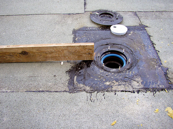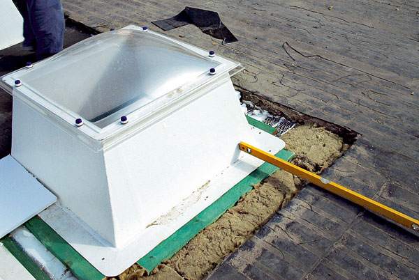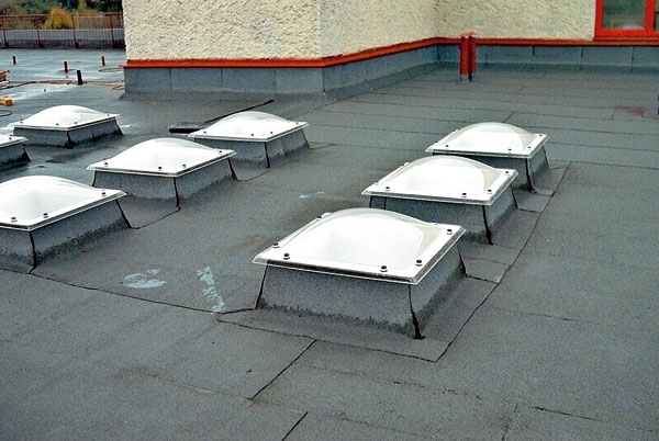 | Obr. 11 Vďaka použitiu samolepiacich modifikovaných asfaltových pásov bolo možné vodotesne opracovať steny plastových svetlíkov (obrázok súvisí s obr. 15). |