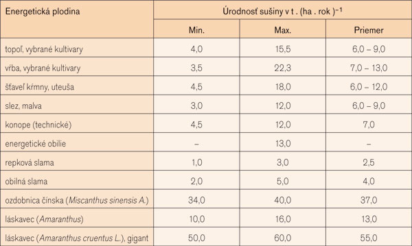 Relatívne novým zdrojom biomasy sú porasty tzv. energetických plodín – rastlín. Termínom energetické plodiny alebo rastliny sa označujú taxóny drevín, trvaliek a bylín, teda botanické druhy, kultivary, klony, prírodné a zámerné krížence. Tieto rastliny sa využívajú alebo testujú na zámernú produkciu biomasy vhodnú pre sektor energetiky – výrobu biopalív, príp. spaľovanie alebo spoluspaľovanie. Ich rast, a najmä objemová produkcia t . (ha . rok)–1 pri intenzívnom pestovaní výrazne prevyšuje priemerné hodnoty ostatných plodín v daných pestovateľských podmienkach.
