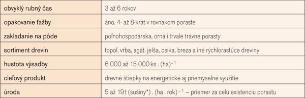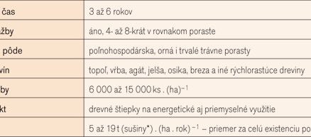 Tab. 2: Základné parametre výmladkových plantáží RRD