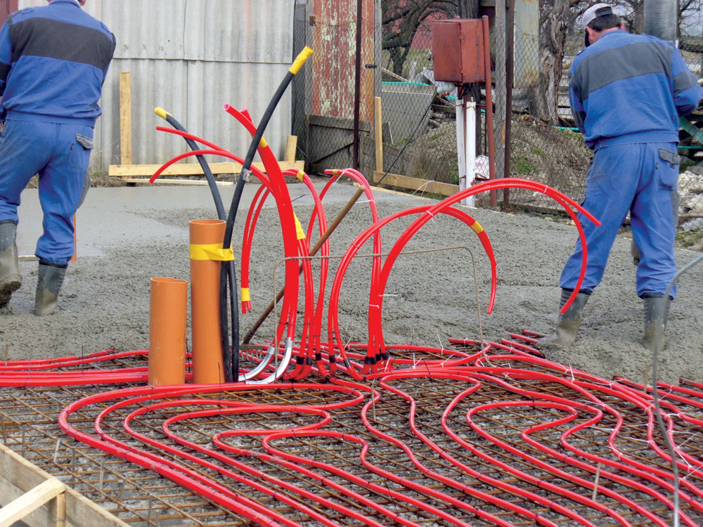 Obr. 2  Zemný zásobník tepla – plastové potrubie v základovej doske