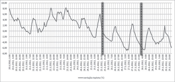 Obr. 7  Priebeh vonkajšej teploty (°C) od 20. 1. do 30. 1. 2012