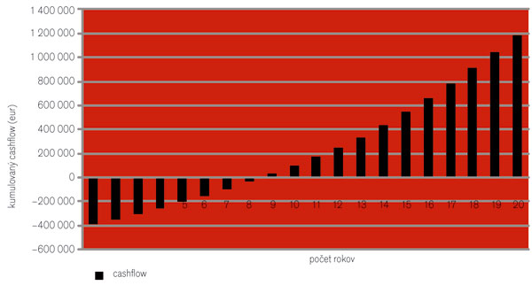 Cieľom technicko-ekonomického vyhodnotenia je nájsť ziskovosť/rentabilitu projektu a jednotlivých energeticky úsporných opatrení a správne ich zoradiť. V analýze peňažného toku (obr. 7) sú zohľadnené investície, technicko-ekonomická životnosť, nominálna úroková miera, miera inflácie a reálna úroková miera.