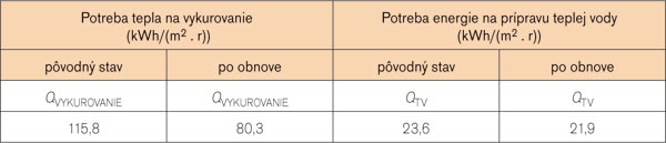 Tab. 2 Špecifická potreba tepla na vykurovanie a potreba energie na prípravu TV pred obnovou a po nej