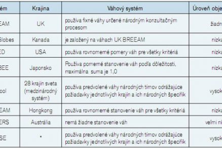 Tab. 1 Úroveň objektívnosti systémov komplexného hodnotenia budov
