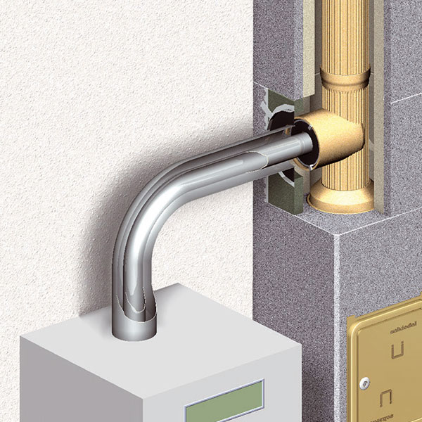 Požiadavkám Blower Door testu vyhovujú komínové systémy bez zadného odvetrania, ktoré nenarúšajú prevádzku riadeného vetrania objektu a nespôsobujú úniky tepla odvetrávacími kanálikmi. Komínové systémy sálajú len minimálne množstvo tepla a vyznačujú sa dobrými tepelnotechnickými vlastnosťami pri priestupe tepelnou izoláciou. Na rozdiel od trojzložkových komínov, ktoré sú najpoužívanejším typom komínov v bežných domoch, sú moderné komínové systémy maximálne tesné. Tesná konštrukcia komínového systému zabraňuje vzniku tepelných mostov. Komínový systém bez zadného odvetrania má spalinovú cestu a súčasne privádza spaľovací vzduch priamo do spotrebiča. Zásadným prínosom komínových systémov bez zadného odvetrania je dostatočný prísun vzduchu komínovým systémom na spaľovanie bez vplyvu na energetickú bilanciu pasívneho domu. Prieduch, ktorým sa privádza vzduch do kozuba, musí byť tepelne izolovaný, aby sa zabránilo ochladzovaniu interiéru. Pri inštalácii kozuba a jeho napojenia na komín sa zároveň treba vyhnúť mechanickej klapke. Optimálny prívod vzduchu zabezpečí elektronická klapka kozuba.