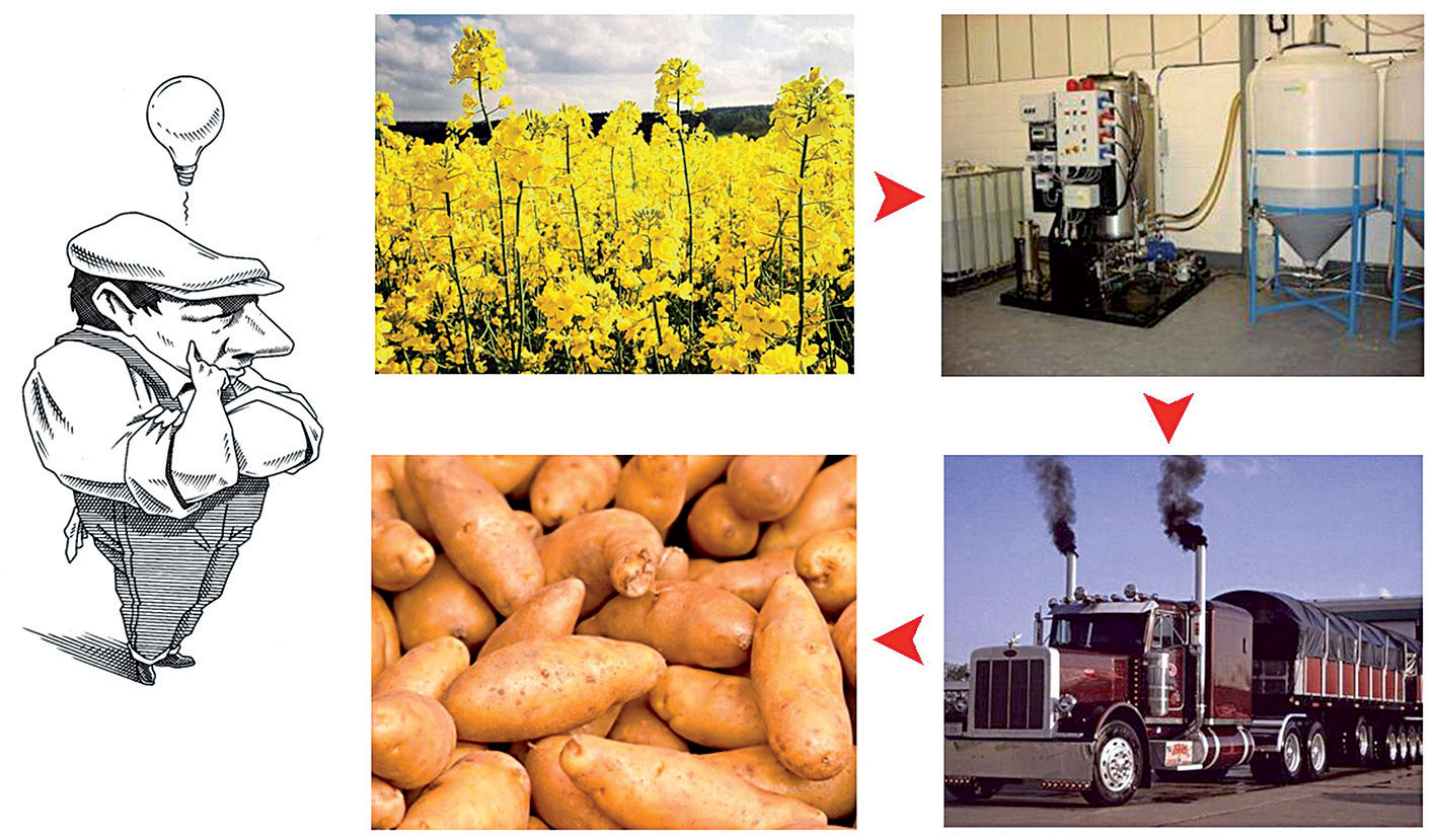 Na poliach pestujeme repku olejnú, z ktorej vyrobíme bionaftu. Bionaftu natankujeme do kamióna, ktorým prepravíme potraviny z krajín západnej Európy. Tieto potraviny sa však mohli pestovať na tom istom poli ako repka priamo u nás – bez potreby kamióna, jeho paliva, závodu na výrobu bionafty a množstva zbytočne vynaloženej práce a energie. Tento príklad ilustruje jednu z mnohých nezmyselných situácií „civilizovanej“ spoločnosti. Žiaľ, v trhovej kapitalistickej spoločnosti musia bezpodmienečne existovať podobné nezmyselné cykly.  Nie je ťažké zrátať, pri akých podmienkach bude mať naše bývanie minimálnu spotrebu zdrojov, ako aj minimálny vplyv na životné prostredie. Zistíme, že musí fungovať na rovnakých princípoch ako príroda. Mravce na Slovensku si nestavajú mravenisko z materiálu dovezeného z Poľska, využívajúc elektrickú energiu vyrobenú v Nemecku. Stavajú len z toho, čo je „poruke“, s energiou, ktorá je „poruke“.  Mohli by sme využívať materiály, energiu a potraviny zo svojho okolia. Eliminovali by sa tak energetické potreby nášho bývania (aj našej práce) približne o 95 %. To však nie je žiaduce. Kde by bol zisk všetkých článkov vstupujúcich do procesu? Ekonomika štátov by sa zrútila. Tá nepotrebuje šetrenie ani skutočné nulové domy. Potrebuje „nulové“ domy, ktoré potrebujú fotovoltické systémy, veterné turbíny, batérie, tepelné čerpadlá. Takéto „nulové“ domy potrebujú dodávky vody, potravín, materiálov, technológií, čo si vyžaduje existenciu kameňolomov, cementární, rafinérií, kancelárií, t. j. vecí, ktoré treba kúpiť či vyrobiť, teda vecí, na ktorých sa dá zarobiť.