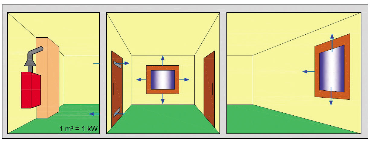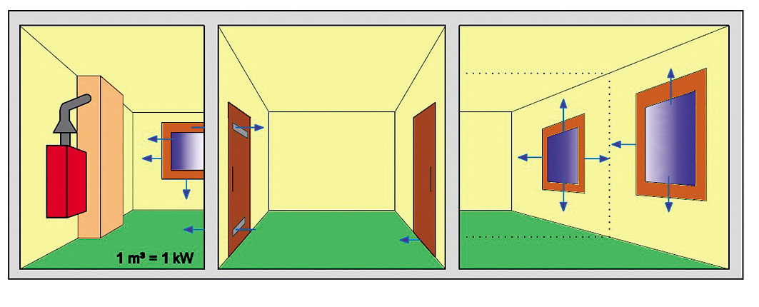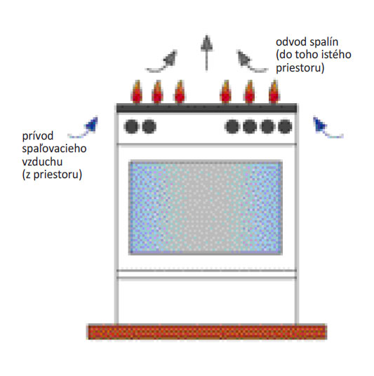 2. umiestnením spotrebiča do miestnosti so samostatným trvalým prívodom vzduchu z vonkajšieho priestoru otvorom alebo otvormi s voľným prierezom minimálne 0,001 m2 na 1 kW príkonu, najmenej však 0,02 m2; otvory je vhodné zriadiť čo najnižšie nad podlahou v miestnosti,