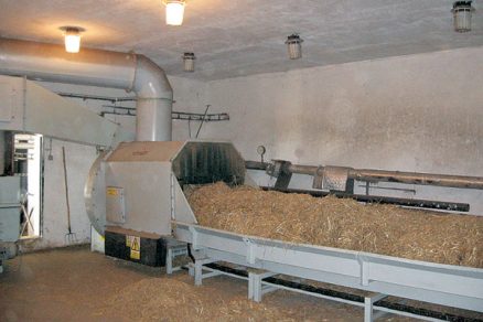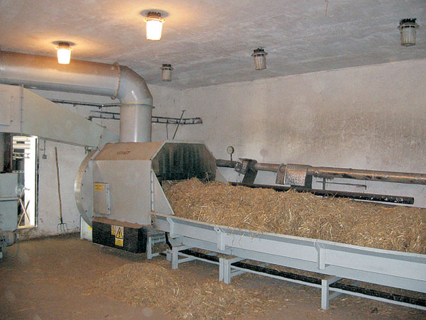 | Obr. 2 Pohľad do skladu slamy | Obr. 4 Doprava rozdrvenej slamy do horáka |