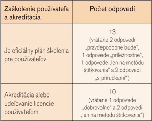 Odpovede týkajúce sa zaškolenia používateľa a akreditácie sú zhrnuté v tab. 4.