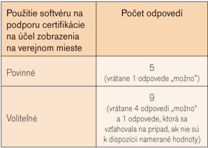 - o niečo menej respondentov zamýšľa používať softvér na podporu certifikácie na účel vystavenia na verejnom mieste, pričom vo väčšine prípadov bude využívanie softvéru voliteľné,