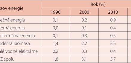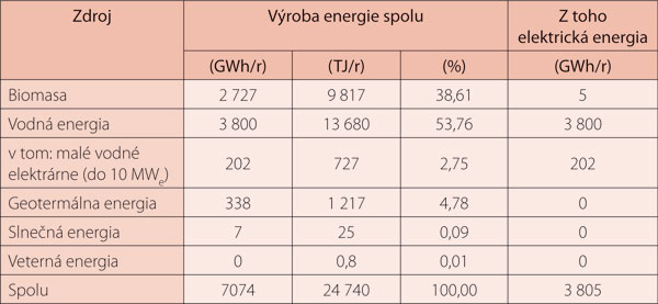 OZE sa v súčasnosti nevyužívajú rovnomerne a dostatočne, hoci mnohé z nich sú dostupné vo veľkom rozsahu a ich reálny ekonomický a energetický potenciál je značný. Ak posudzujeme súčasný stav technicky využiteľného potenciálu OZE na Slovensku (tab. 4), najväčší podiel má vodná energia (55,3 %), za ňou nasledujú biomasa (39,7 %), geotermálna energia (4,9 %), slnečná energia (0,15 %) a veterná energia (0,05 %).