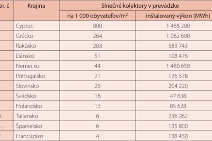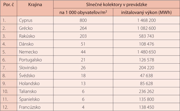 Tab. 3: Prehľad inštalovaných slnečných kolektorov v štátoch Európy