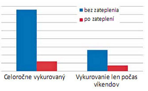 Zateplenie malého zrubového rekreačného domu na úroveň minimálnej normovej požiadavky je jednoznačne nákladovo efektívne pri celoročnej prevádzke. Veľký nepomer v nákladoch na vykurovanie medzi zateplenou a nezateplenou chatkou dokumentuje obr. 5. Zlepšenie tepelnoizolačných vlastností počas rekonštrukcie umožní zmeniť spôsob vykurovania a klasické konvekčné vykurovanie nahradiť alebo doplniť sálavým podlahovým vykurovaním.