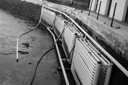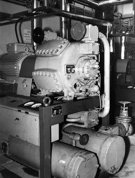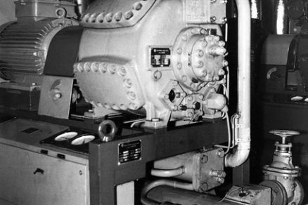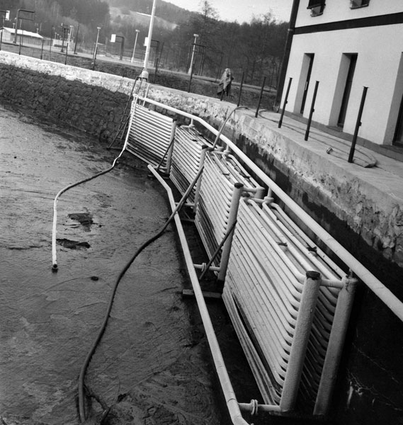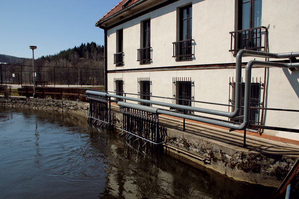 | Obr. 3 Pôvodné tepelné čerpadlá z ČKD Choceň | Obr. 4 Výmenník tepla umiestnený v riečnom náhone | Obr. 5 Časť absorpčnej steny |