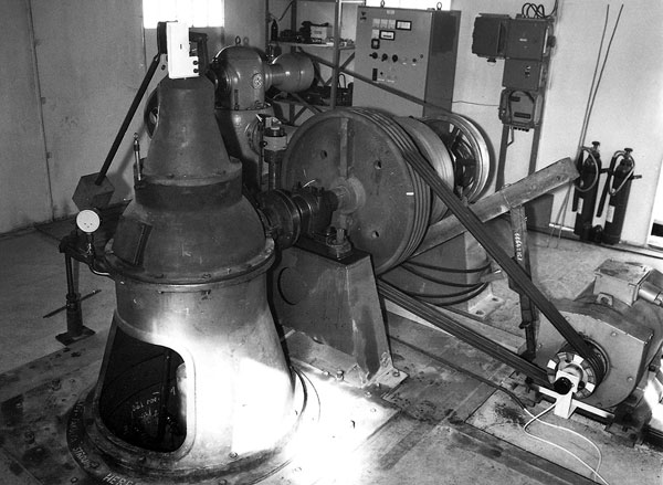 Významným energetickým zdrojom bola od roku 1982 vodná turbína s výkonom 40 až 45 kW (pri optimálnom prietoku), využívajúca nový mlynský náhon so spádom 2,8 m. Vysoká škola turbínu získala z majetku jedného poľnohospodárskeho družstva a v dielňach ČVUT sa vykonala jej generálna oprava. Turbína sa po vybavení regulátorom a generátorom nainštalovala a ročne vyrobila 220 až 300 MWh elektrickej energie. Pretože spotreba elektrickej energie sa pohybovala okolo 260 MWh, v niektorých rokoch bol k dispozícii nadbytok elektrickej energie, ktorý sa dodával do siete a v niektorých rokoch, naopak, nedostatok. Vodná turbína sa umiestnila v plechovom objekte nad náhonom (obr. 7). Ako záložný zdroj fungoval spomenutý elektrický kotol s výkonom 396 kW s akumulačnými zásobníkmi s objemom 2 × 32 m3.