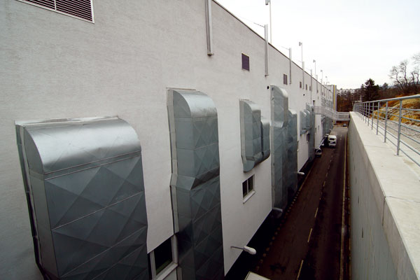 Vetranie objektu je v prevažnej miere nútené. Na ohrev ohrievačov vzduchu jednotiek VZT v kotolniach sa vytvorila osobitná neregulovaná vetva s teplotným spádom vykurovacej vody 80/60 °C. Protimrazová ochrana ohrievačov sa zabezpečuje pomocou zdvojených cirkulačných čerpadiel s konštantnými otáčkami. Otáčky centrálnych čerpadiel VZT sú riadené pomocou frekvenčných meničov.