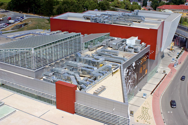 Vzduchotechnické jednotky zaisťujúce prívod a odvod vzduchu sú rozmiestnené v štyroch strojovniach v rámci budovy, niekoľko sa ich umiestnilo aj na streche objektu ESC. Vo väčšine jednotiek sa využíva rekuperácia vzduchu. Na distribúciu vzduchu do jednotlivých priestorov sa zvolili koncové elementy podľa výšky inštalácie – a to buď vírivé anemostaty, alebo dýzy.