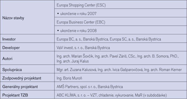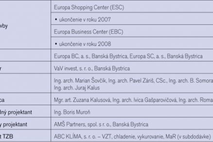 K významným realizáciám z hľadiska TZB na Slovensku pribudli nedávno stavby Europa Shopping Center a Europa Business Center v Banskej Bystrici. Táto skutočnosť neunikla ani Slovenskej spoločnosti pre techniku prostredia (SSTP), ktorá im udelila Cenu SSTP za realizovaný projekt roka 2008.