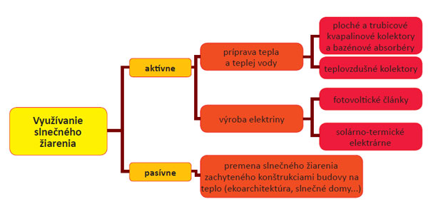 Slnečná energia je najdostupnejšou a najčistejšou formou obnoviteľnej energie, ktorú môžeme získať. Je hnacím strojom života na Zemi – zohrieva atmosféru a pevninu, vytvára vietor, zohrieva oceány, spôsobuje odparovanie vody, dáva silu vodným tokom a rastlinám, aby mohli rásť, a z dlhodobého hľadiska vytvára aj fosílne palivá. Každý rok dopadne zo Slnka na Zem asi desaťtisíckrát viac energie, ako ľudstvo za toto obdobie spotrebuje. Množstvo slnečnej energie dopadajúcej na územie Slovenska je asi 200-násobne väčšie, ako je súčasná spotreba primárnych energetických zdrojov u nás. Počas dňa pri bezoblačnom počasí dopadne zo Slnka na zemský povrch v priemere 1000 W/m2. Celkovo tak na Slovensku za rok dopadne na vodorovnú plochu približne 950 až 1 200 kWh na 1 m2. Existuje mnoho princípov premeny slnečnej energie na inú formu energie, najčastejšie je to premena na tepelnú a elektrickú energiu.
