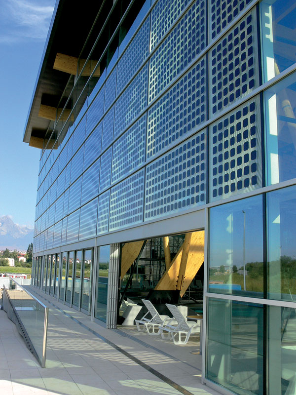 Nová bazénová hala v areáli AquaCity Poprad je vybavená technológiou fotovoltickej fasády. Fotovoltika integrovaná priamo do fasády sa na Slovensku a v strednej Európe použila prvýkrát. Fotovoltické izolačné dvojsklá sú priamo integrované do transparentnej hliníkovej fasádnej konštrukcie FW50+.