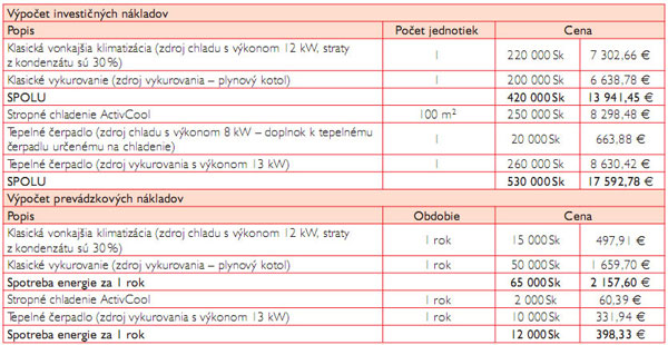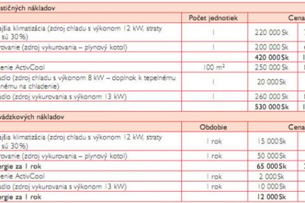 • K tepelnej pohode, vďaka kombinácii sálania a chladenia vzduchom, stačí teplota miestnosti 24 až 26 °C, čo šetrí náklady na energiu a prevádzkové náklady.