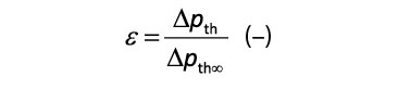 Pri prechode vzdušnín ventilátorom dochádza k tlakovým stratám z dôvodu trenia a k miestnym tlakovým stratám (rôzne tvarovky a potrubné prvky). Samotný ventilátor predstavuje stroj s daným počtom lopatiek, pričom pri prechode vzduchu cez obežné koleso dochádza k určitým stratám. Tlakové straty potrubnou sieťou opisuje hydraulická účinnosť hh (–). Parameter e vyjadruje pomer medzi teoretickým dopravným tlakom ventilátora, ktorý má konečný počet lopatiek (Dpth), oproti dopravnému tlaku ideálneho ventilátora s nekonečným počtom lopatiek (Dpth∞). Je určený vzťahom