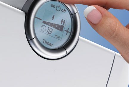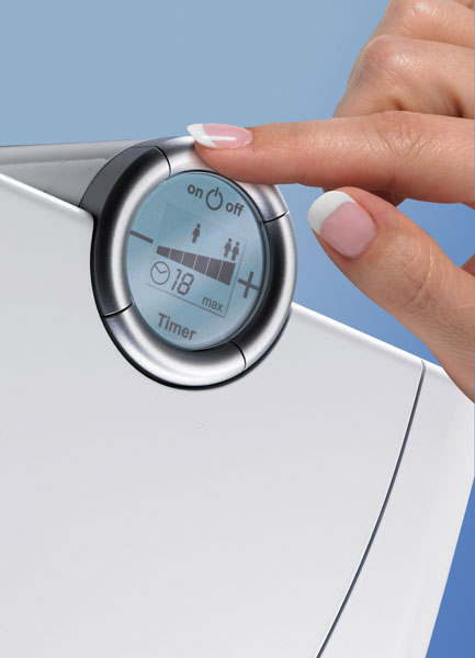 | Nástenný vetrák AEROPAC ocenený medzinárodnou cenou za dizajn Plus X. | Prístroj sa ovláda celkom jednoducho prostredníctvom kruhového tlačidlového ovládača. |