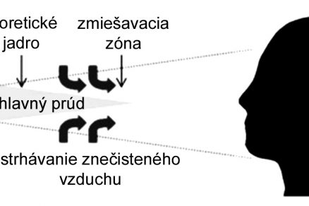 Prúd vzduchu dokáže zároveň ochladiť hlavu a zvýšiť tepelnú pohodu v lete [13]. Príklad personalizovaného vetrania je na obr. 1, ktorý znázorňuje typický profil rýchlosti pri voľnom prúde vychádzajúcom z kruhovej dýzy. Hlavný prúd čerstvého vzduchu so sebou strháva znečistený okolitý vzduch a následne sa s ním zmiešava. Toto strhávanie teplého a znečisteného okolitého vzduchu treba v maximálnej možnej miere eliminovať, aby sa zabezpečil prívod čerstvého nezmiešaného vzduchu priamo do dýchacej zóny. To možno dosiahnuť precíznym návrhom výustky.