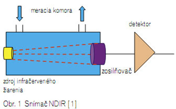 Princíp merania je založený na tom, že pri vzájomnom pôsobení snímača a meraného plynu nedochádza k chemickým zmenám analyzovanej látky. Najčastejšie sa v tejto oblasti používa metóda nedisperzného merania útlmu svetla v infračervenej oblasti (metóda NDIR) (obr. 1) založená na schopnosti niektorých plynov absorbovať určitú vlnovú dĺžku žiarenia, ktoré nimi prechádza. Táto metóda umožňuje s vysokou citlivosťou určiť a merať zloženie plynov, ktorých absorbčné pásma ležia v spektre infračervených vlnových dĺžok od 200 do 900 nm. Medzi takto merateľné plyny patria napríklad CO2, CO, NO, SO2 alebo CH4. Každý druh plynu pohltí inú vlnovú dĺžku, a tak možno v zmesi plynov určiť presné zloženie.