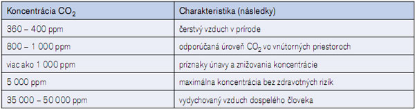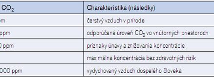 Tab. 1 Koncentrácia CO2 a zdravotné následky