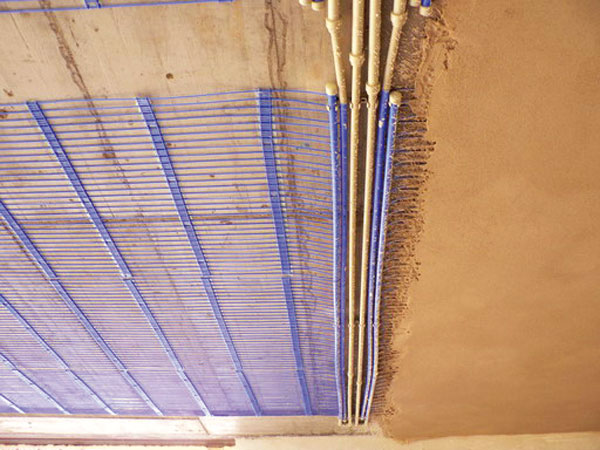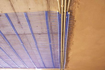 Obr. 2: Aplikácia kapilárnych rohoží: a) na betónovej stropnej doske, b) stropné kazety