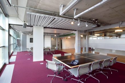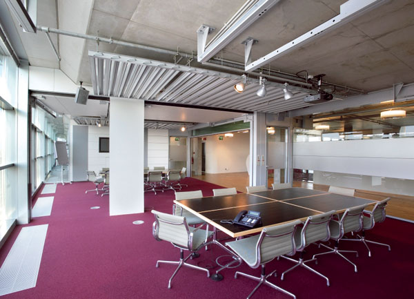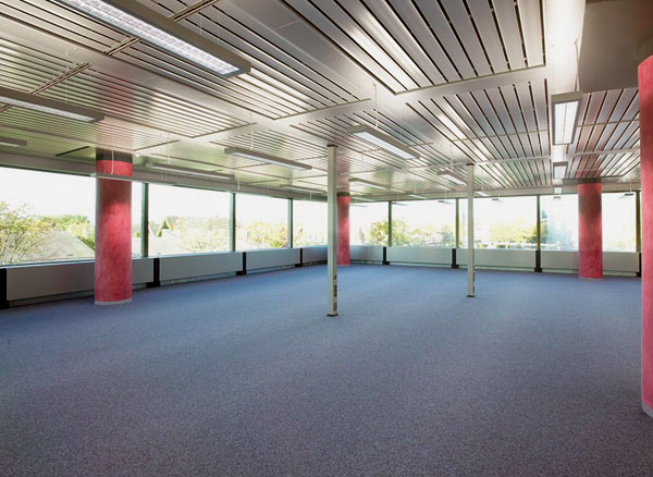 Asi najbežnejším použitím je aplikácia v kanceláriách a zasadacích miestnostiach administratívnych budov. Príklad inštalácie vo veľkopriestorovej kancelárii s výrazným podielom zasklených plôch je zrejmý z obr. 1b. Chladiaci strop tu tvorí zároveň podhľad a určuje architektonický ráz celého priestoru.