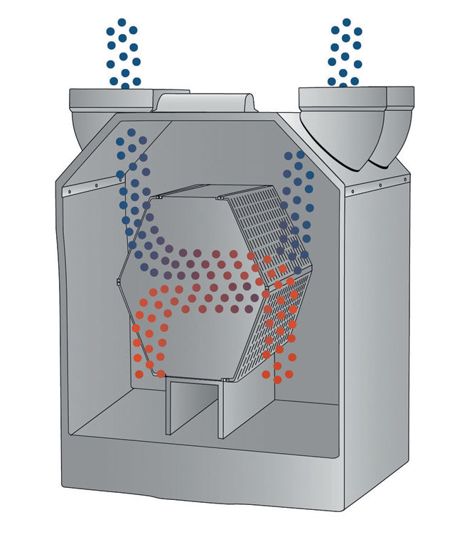 V prípade vysoko účinného krížového entalpického výmenníka Zehnder vodná para z vlhkého odvádzaného vzduchu „kondenzuje“ a cez pórovitú štruktúru polymérových membrán výmenníka je nasávaná do privádzaného vzduchu. Špeciálna antibakteriálna vrstva polymérovej membrány Microban zabraňuje možnosti prechodu odvádzaných pachov, mikróbov a škodlivín a zachováva vysoko hygienické prostredie. V porovnaní so štandardným tepelným výmenníkom sa mierne znižuje množstvo odovzdávaného tepla, oproti tomu sa však energia vracia akumulovaná vo vodnej pare, čím sa vyrovná celková bilancia spätného získavania tepla.