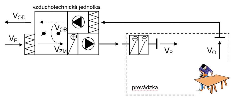 Obr. 3 Vzduchotechnický systém s decentrálnou úpravou vzduchu