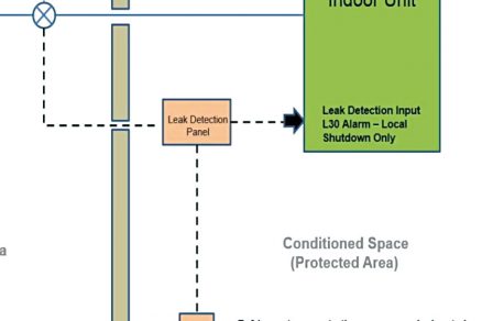 Obr. 2 Opatrenie v praxi na zamedzenie únikov chladiva – detektor ovláda uzatváracie ventily chladivových rúrok.