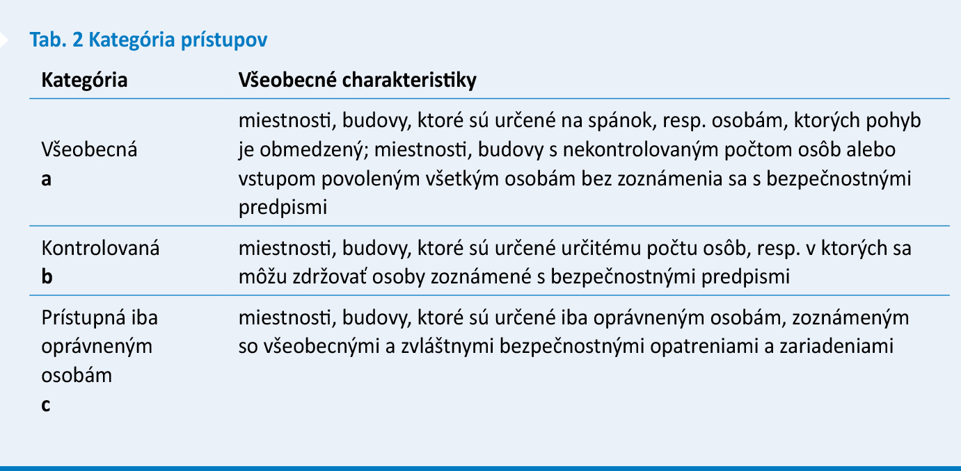 - určí sa príslušná kategória prístupu a, b, resp. c (tab. 2) a trieda umiestnenia I, II, III, IV (tab. 3),