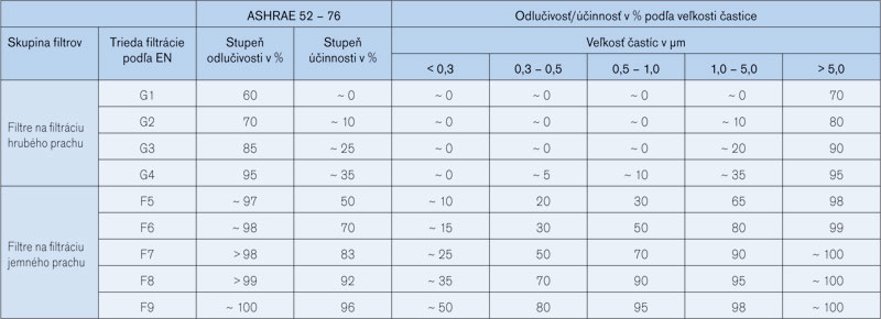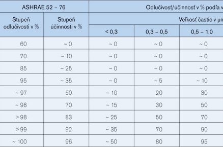 Triedy filtrácie a ich účinnosť v závislosti od veľkosti častíc