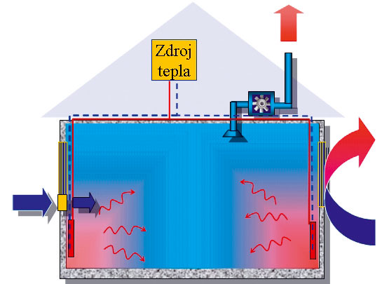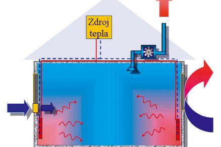 - vďaka zatepleniu a kvalitným oknám sa zvyšuje vnútorná povrchová teplota stien a znižuje sa potreba eliminácie negatívneho sálania a tým aj význam sálavej vykurovacej plochy v miestnosti.