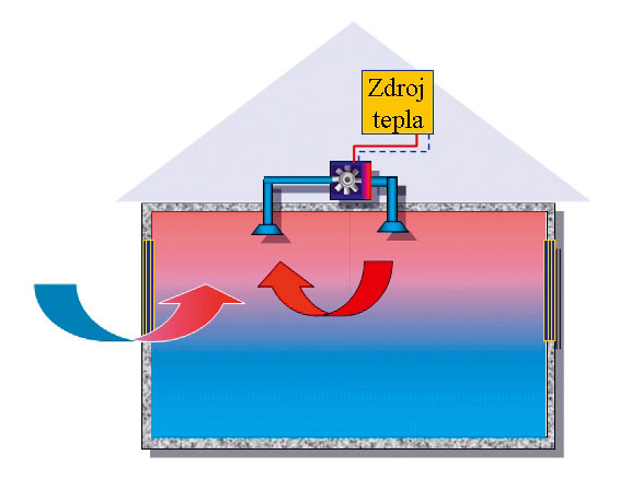 | Obr. 1: Teplovodné vykurovanie, prirodzené vetranie | Obr. 2: Teplovodné vykurovanie, hybridné vetranie |