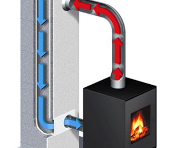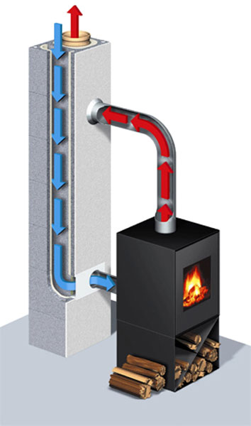 Komínové systémy Schiedel majú okrem spalinovej cesty aj cestu na prívod spaľovacieho vzduchu priamo do spotrebiča. Komínový systém tak dokáže priviesť vzduch na horenie v spaľovacej komore telesom komína, a preto nedochádza k energetickým stratám. Prieduch, ktorým sa privádza vzduch do kozuba však musí byť tepelne izolovaný, aby sa zabránilo ochladzovaniu interiéru. Okrem toho nesmie mať kozub mechanickú, ale elektronickú klapku, ktorá reguluje optimálny prívod vzduchu do krbu.