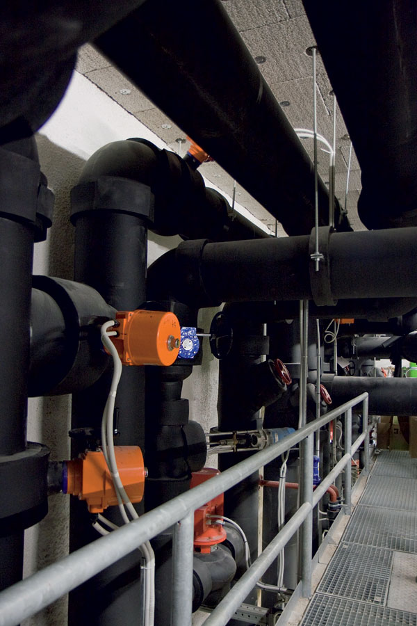 Na materiály rozvodov vykurovacieho média sa zvolila kombinácia oceľových bezšvových rúr s plasthliníkovým potrubím. Každé odberné miesto – či už na strane vykurovania alebo chladenia – má merače chladu a tepla, ktoré budú slúžiť na fakturáciu odobratých médií.