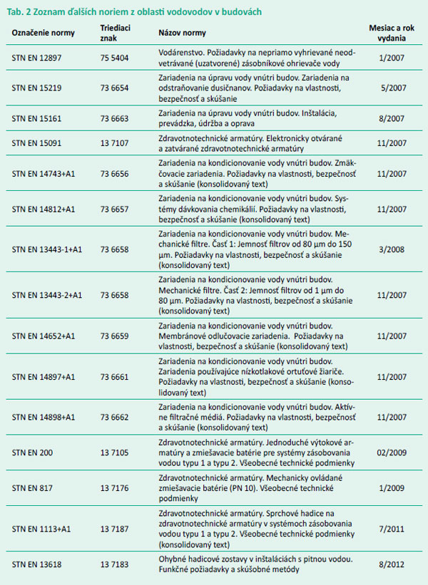 V tab. 2 prinášame zoznam ďalších súvisiacich noriem.