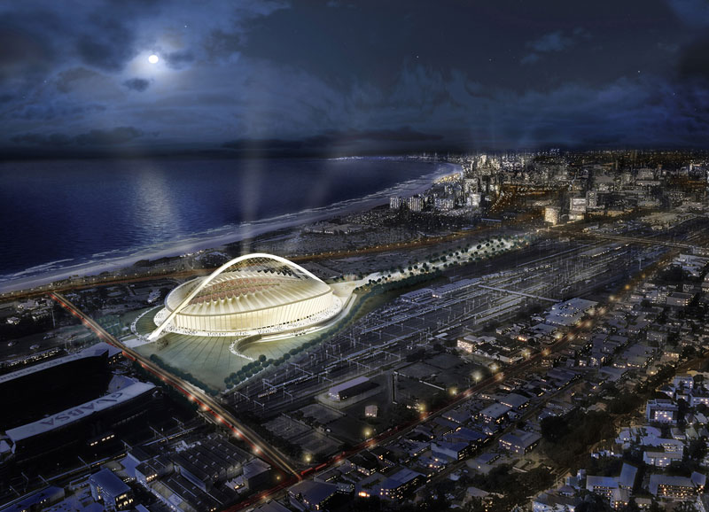 Svetelný oblúk s dĺžkou 350 m, hmotnosťou 2 600 ton a s výškou 30 podlaží, ktorý sa stal symbolom zjednotenia približne 70 000 športových fanúšikov na štadióne Moses Mabhida v Durbane, pritiahne pohľad každého už z diaľky. Na osvetlenie boli použité svetlá „LED Beam“, ktoré OSRAM vyvinul v spolupráci s lokálnym výrobcom BEKA špeciálne prispôsobené požiadavkám štadióna. Sú takmer dva metre dlhé, flexibilne umiestniteľné a odolné proti vplyvom počasia. Vo vnútri svetelného oblúka sa nachádza priestor, z ktorého sa realizovala inštalácia aj údržba svetelných komponentov. „Zvýraznenie tohto jedinečného impozantného stavebného diela našimi LED svetelnými zdrojmi znamenalo pre nás obrovskú výzvu,“ tvrdí Florian Hockel, aplikačný inžinier zodpovedný za realizáciu tohto projektu. „Pôsobivý výsledný efekt určite uchváti tisícky návštevníkov.“S know-how spoločnosti OSRAM sa v Juhoafrickej republike možno stretnúť aj mimo futbalových štadiónov. Svietidlá OSRAM boli použité v oblasti infraštruktúry, napríklad pri osvetlení letiska v Durbane, Johannesburgu a v Kapskom Meste. Rovnako niekoľko staníc predmestskej železnice v Pretórii a v Johannesburgu aj 150 km dlhý úsek štátnej komunikácie boli vybavené svetelnými zdrojmi OSRAM.