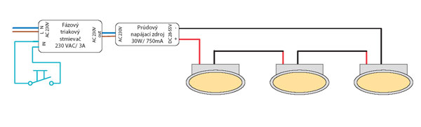 - fázovým stmievačom na strane 230 V AC,