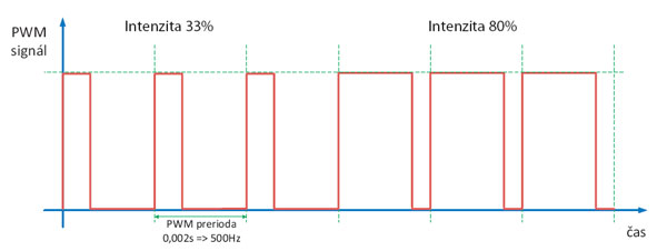 Obr. 3 Princíp stmievania LED pomocou PWM modulácie (zdroj: www.beloon.sk)
