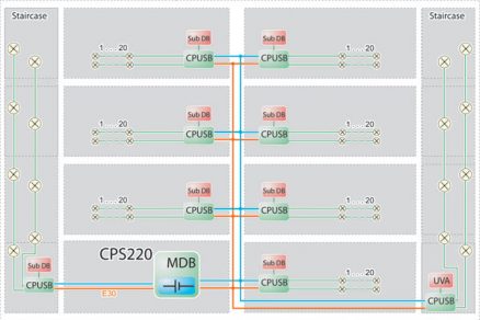 - adresovateľné núdzové svietidlá na trvalé alebo netrvalé núdzové osvetlenie s funkciou centrálneho testovania,