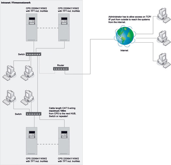 Toto testovanie možno pri zložitejších systémoch zabezpečiť aj pomocou centrálnej testovacej ústredne. Komunikácia v systéme sa môže zabezpečovať prostredníctvom dátových sietí aj v bezdrôtovom rádiovom režime.