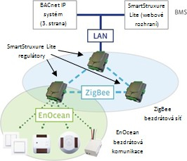 Všetky koncové zariadenia použité v tomto projekte podporujú bezdrôtovú komunikáciu EnOcean. SmartStruxure Lite regulátory sú vybavené EnOcean vysielačom, umožňujúcim ovládať všetky koncové zariadenia pomocou obojsmernej bezdrôtovej komunikácie.